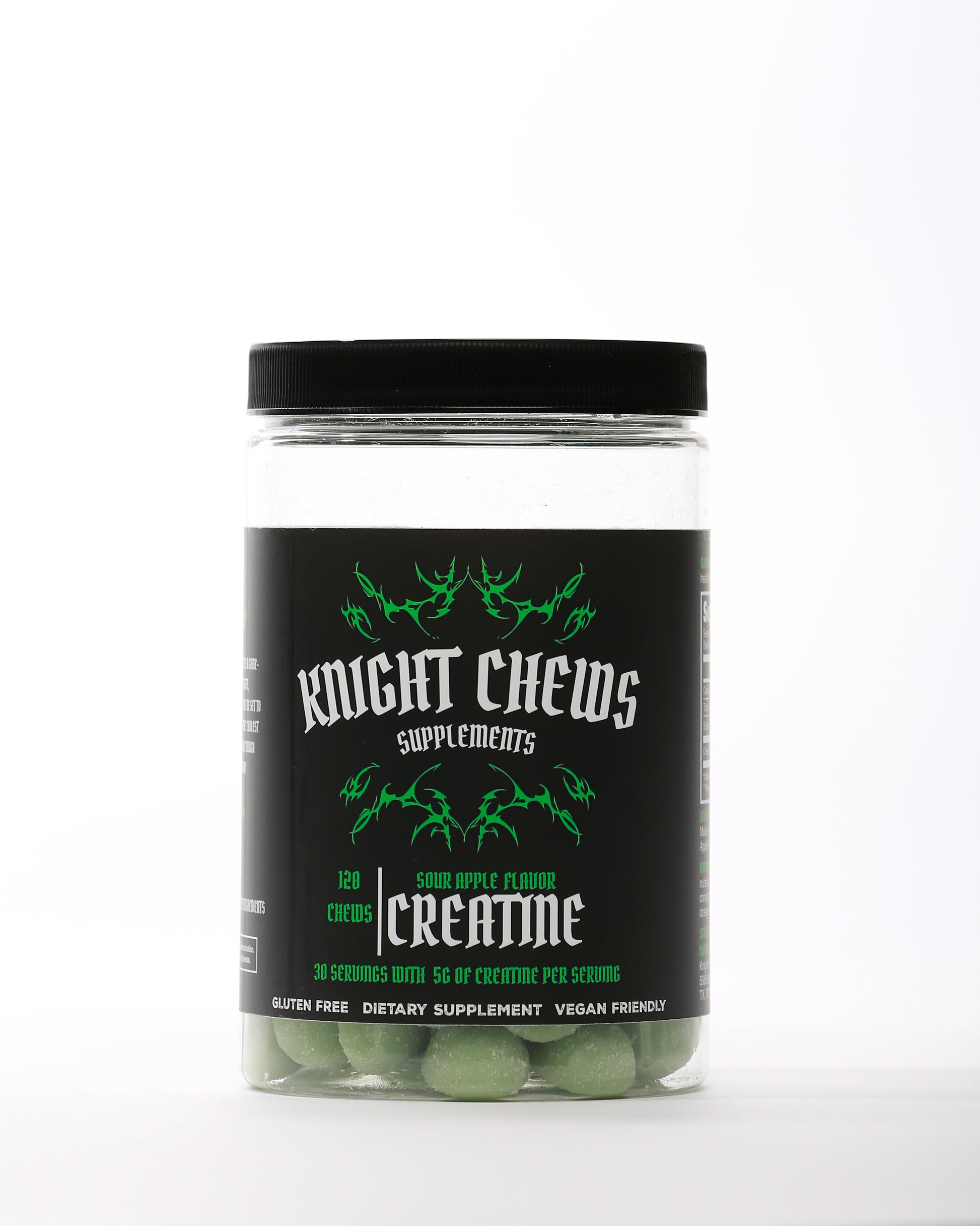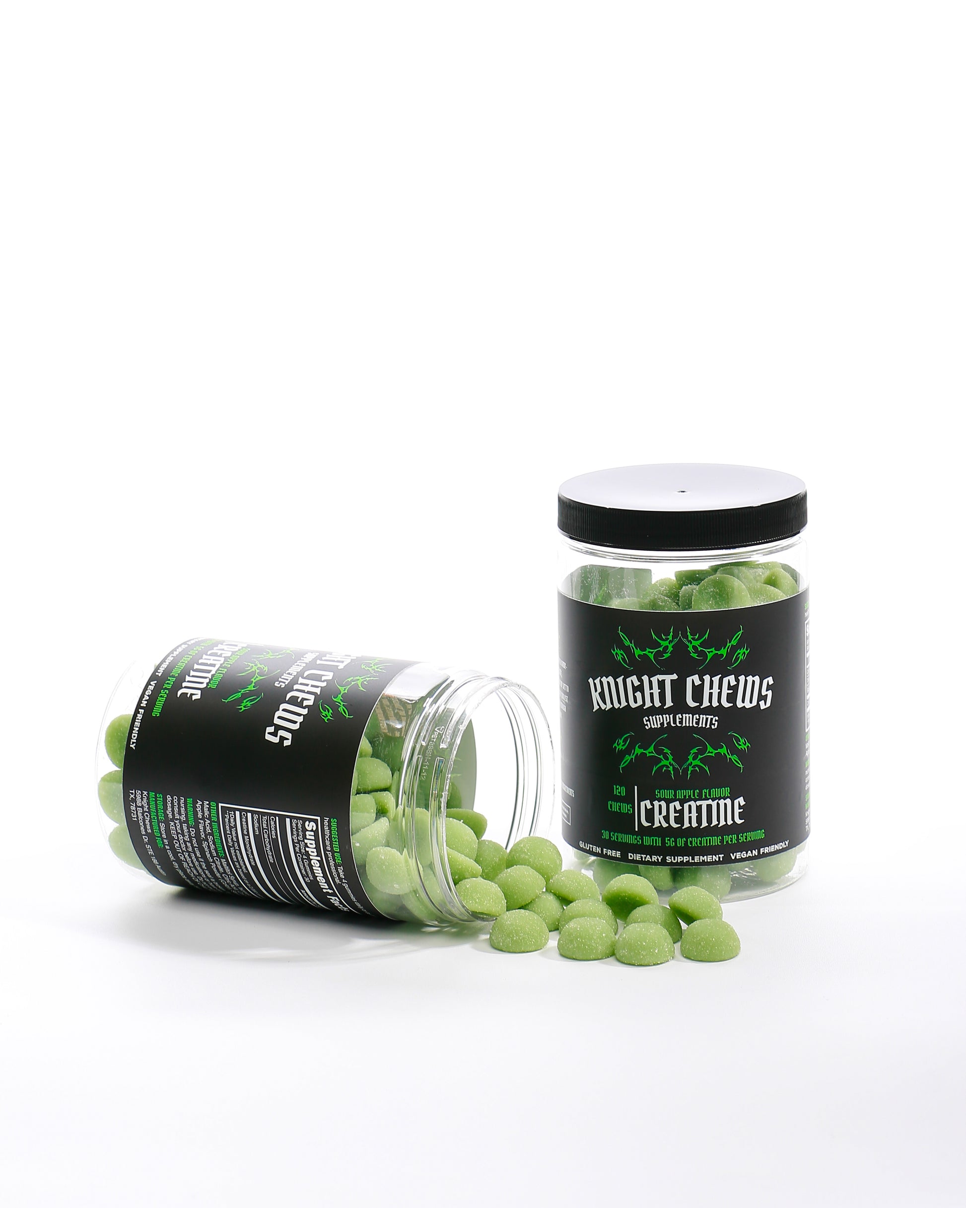 Meet your new favorite way to take creatine. Our Sour Green Apple Knight Chews pack 5 grams of pure creatine monohydrate into a delicious, tangy gummy that makes your daily scoop effortless. Each chew bursts with a crisp green apple flavor and a perfectly sour kick — no shaker, no mess, just great taste and powerful performance.